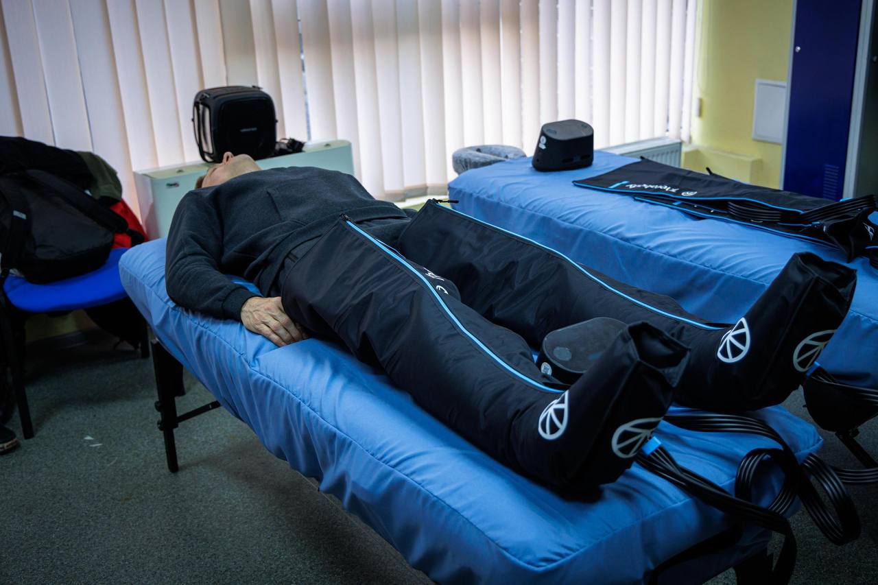 Зокрема, використовуються сучасні системи компресійного відновлення, які зменшують навантаження на м’язи, пришвидшують відновлення та підвищують ефективність тренувань. Це важлива складова реабілітації ветеранів, які повертаються до активного способу життя через спорт.
